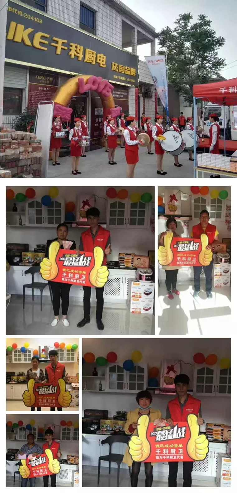 5月6日,河南焦作沁陽專賣店開業,開業三天銷售千科集成灶12套,高端TC22+790C+F55套裝9套,銷售額達13萬多。